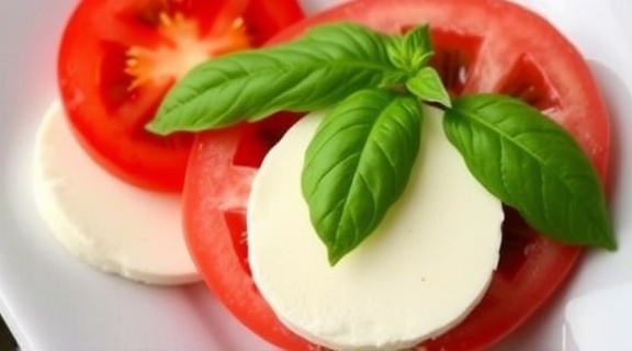 Салат «Капрезе» с моцареллой и базиликом: легкое и освежающее блюдо.