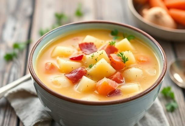 Суп из картофеля с овощами и салом: как создать согревающий и сытный суп.